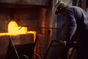 The pot-changing team at Kosta Glassworks