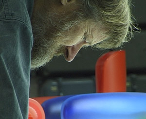 Göran Wärff preparing an exhibition at Kosta Glassworks.